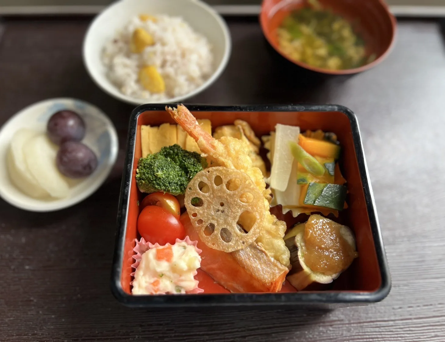 9月23日は「秋分の日」でしたね🍂暑い夏から涼しい秋へと変わり初め、昼の長さと夜の長さが同じになる日です。最近やっと、朝と夕が涼しくなってきました。はやしのお弁当にも秋の味覚がチラホラ🌰