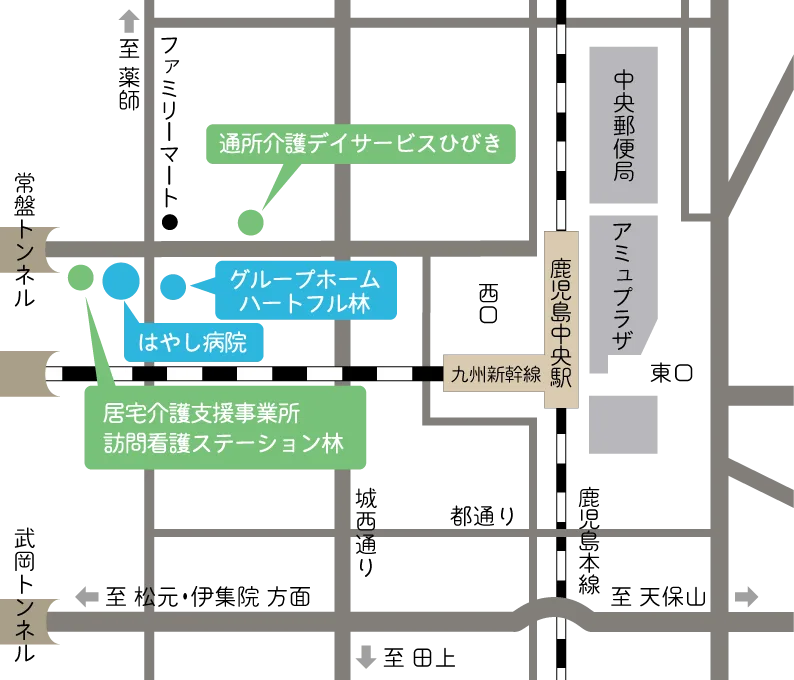 - JR鹿児島中央駅西口から徒歩約5分