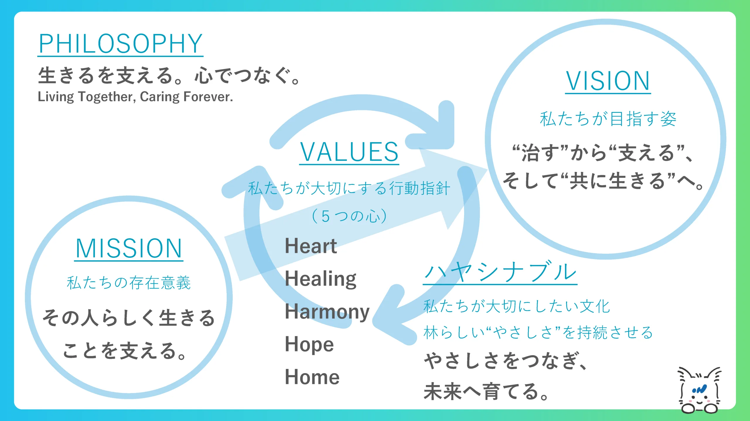 - 地域の人々が「林ヘルスケアがあってよかった」と感じる存在であり続けます。